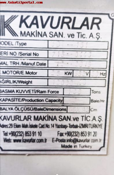 2017 model Double casing Kavurlar brand Bale press machine will be sold.